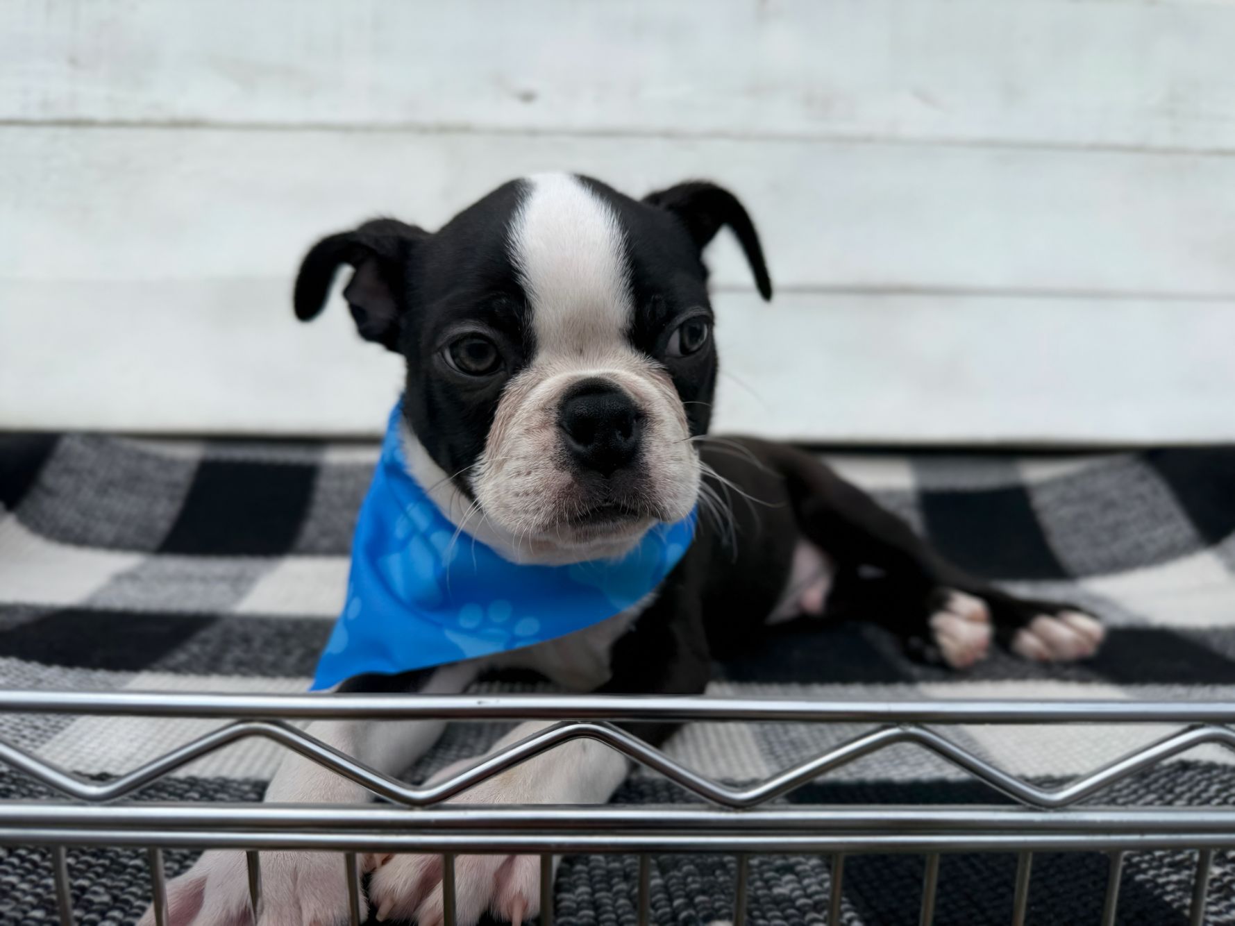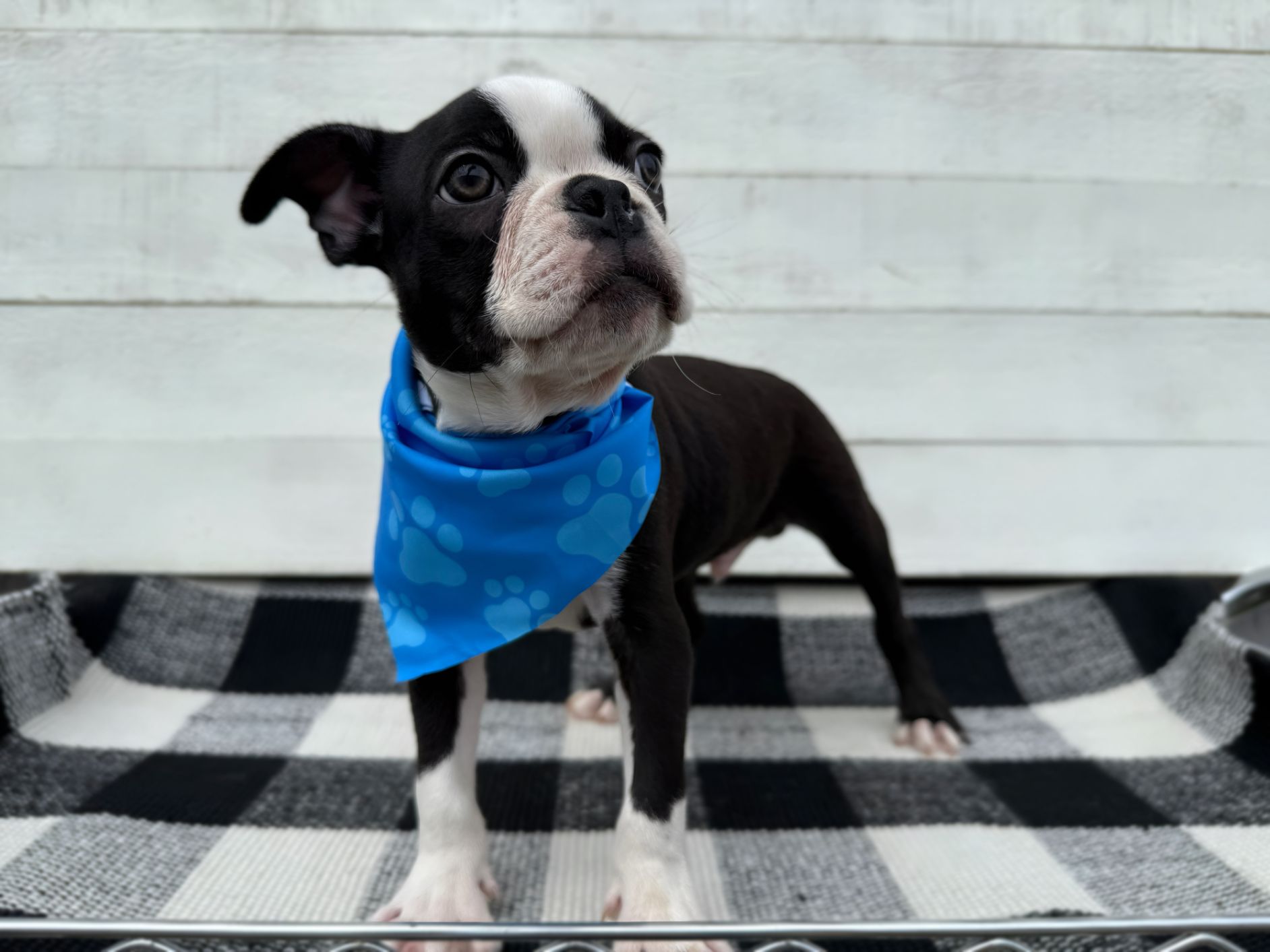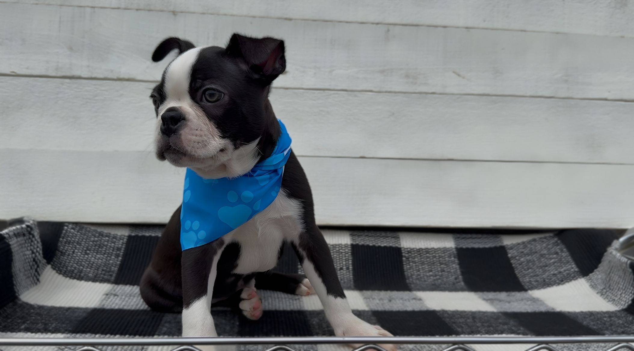 Affectionate, gentle, and always formally dressed, the Boston Terrier is one of America’s favorite breeds. Holding to classic terrier form, this mighty pup brings lots of fun and energy. The Boston has a huge personality and is a great friend to have. This breed ranges from 15 to 25 pounds and typically stands 11 to 18 inches tall. Standard coat colors are black and white, with brindle and red. The Boston is relatively easy to groom and generally responds well to training.
