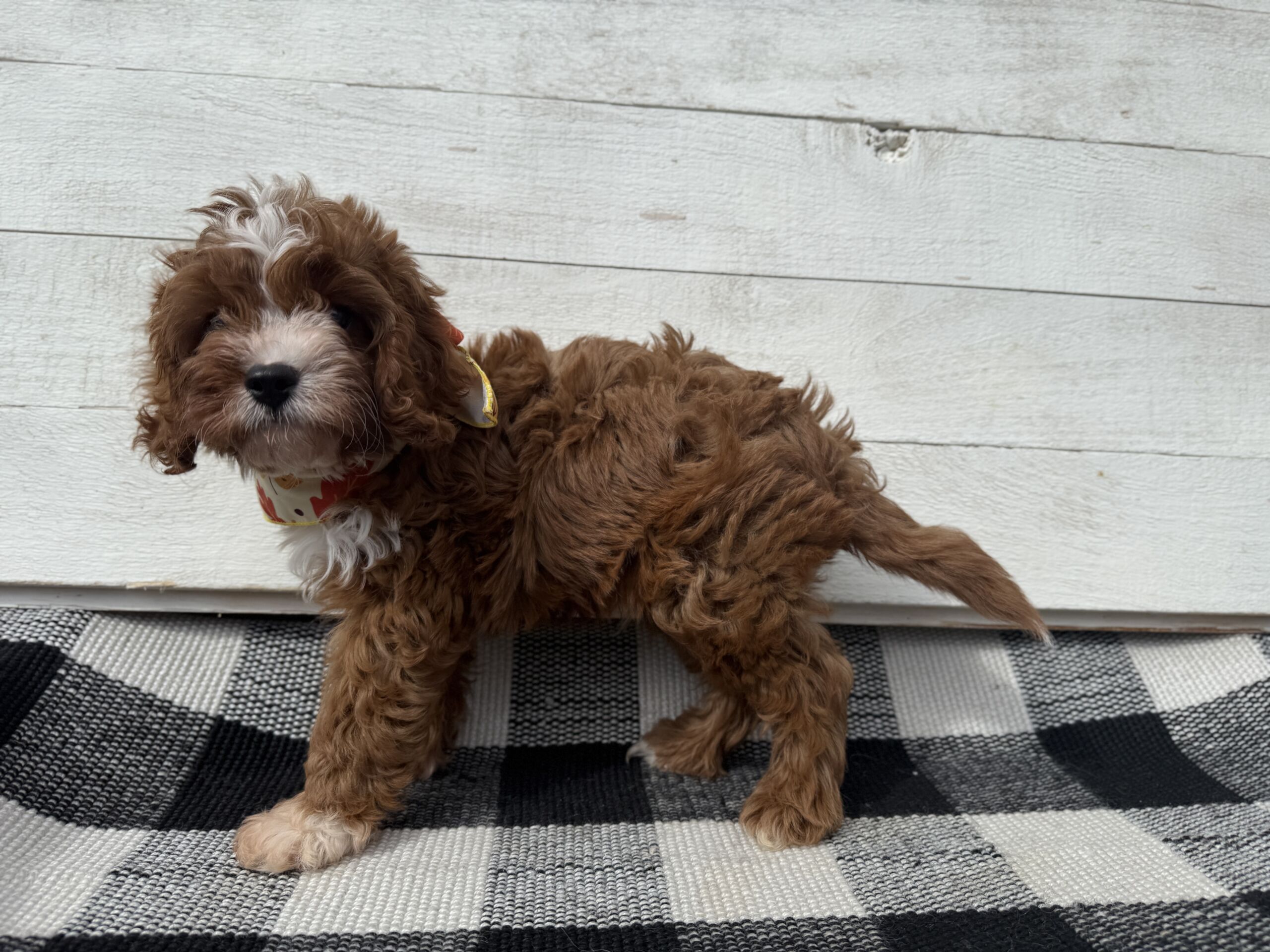This beautiful mix between a Cavalier King Charles Spaniel and a Poodle makes for an outgoing and attention loving pup! Whether it’s cuddling on the couch or going for a jog, the Cavapoo is up for it all. These pups come in a variety of colors, and its soft wavy coat is hypoallergenic! Cavapoos are very intelligent, and their kind and affectionate nature makes them the perfect pup for family life.