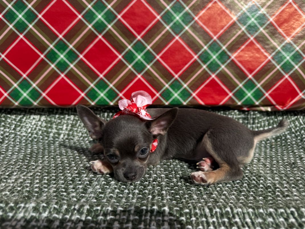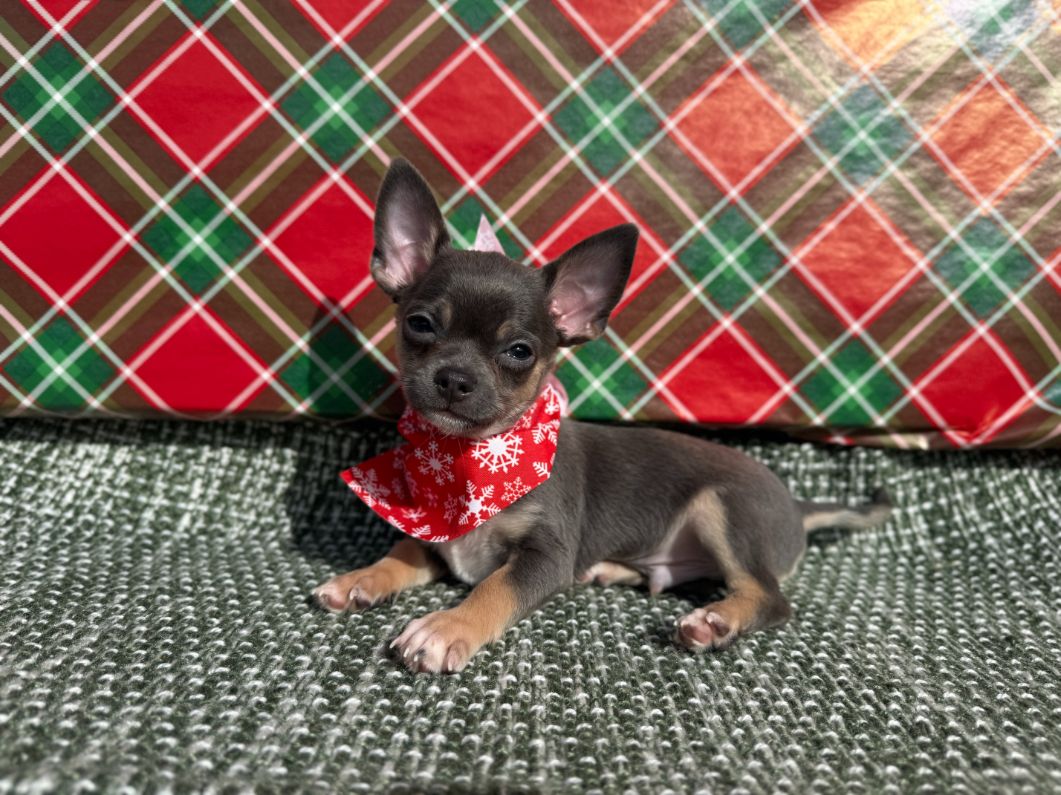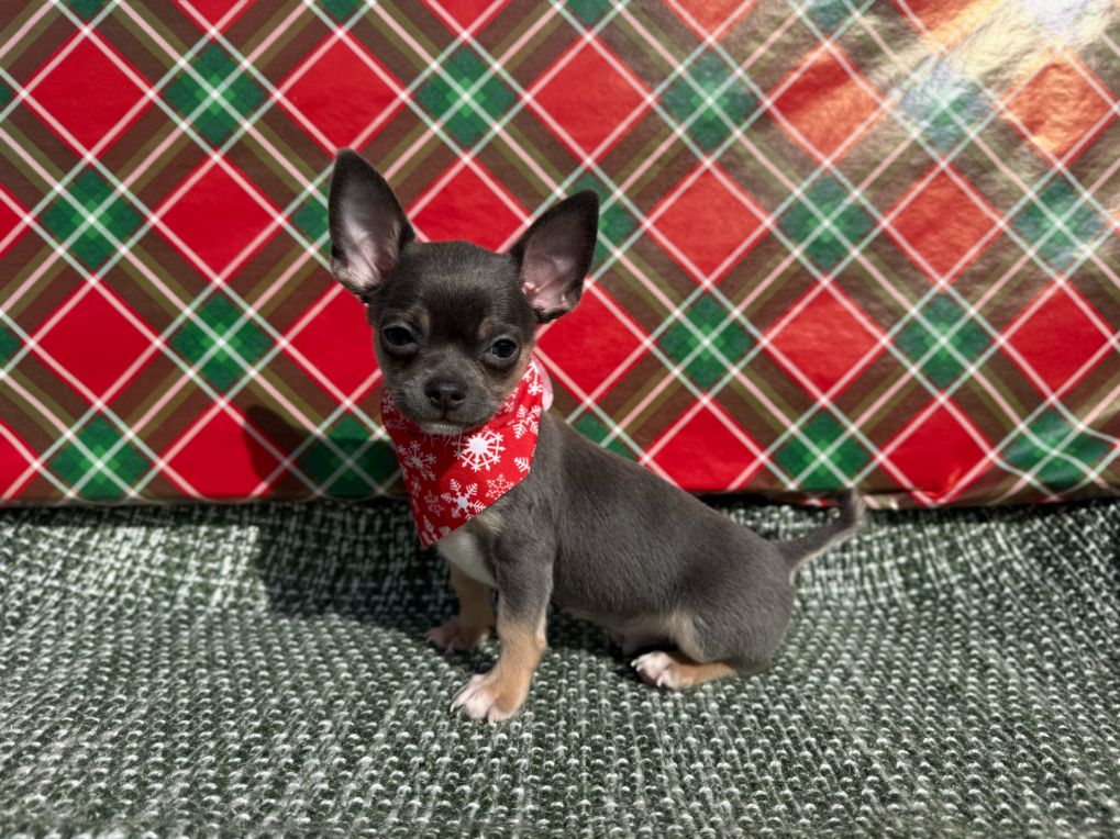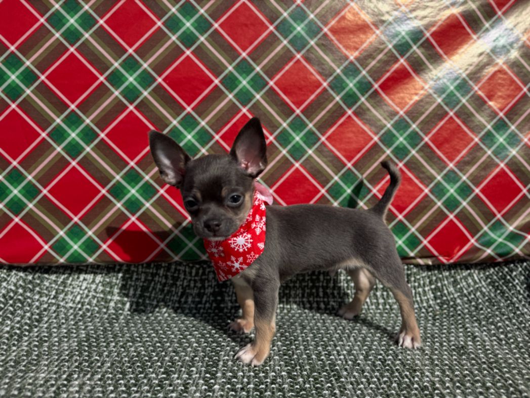 The smallest breed in the world might have the biggest personality. The Chihuahua averages only 3 to 7 pounds but can live up to 20 years! This small but mighty pup will bond tightly to its owner, providing you with a very special level of companionship. Easy to dress up and take around town, this breed is at its happiest pressed up against your shoulder watching the world go by. Courageous and devoted, this tiny breed comes in many colors and sizes, head types, as well as coat types. The Chihuahua is seen in shades of tan, brown, black, white, tri color, and chocolate to name a few. Call us today to reserve your new best friend!