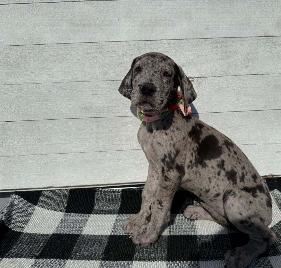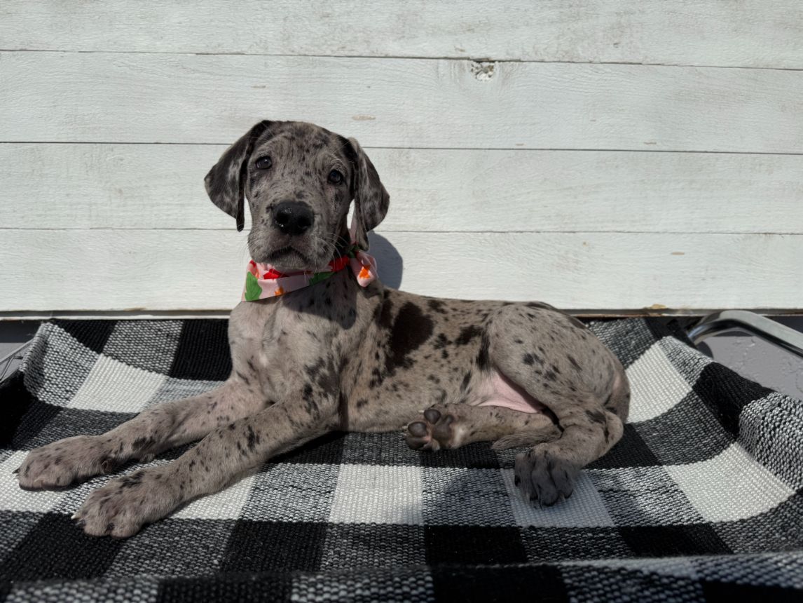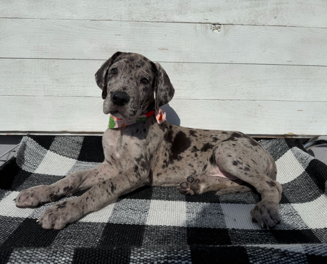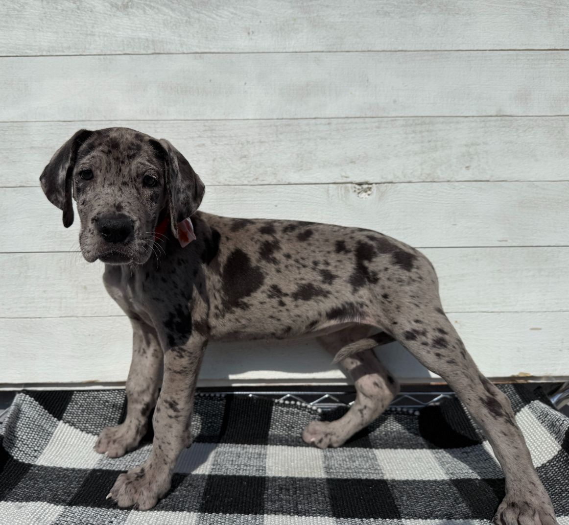 A big breed with an even bigger heart, the Great Dane is a large and lovable dog that brings happiness and unconditional love to its human friends. These gentle giants have a calm and sweet temperament, and get along well with other dogs, pets, and humans. They are eager to please, and love to be loved! In adulthood the Dane can range from 100 to 200 pounds and is seen in the beautiful coat colors of harlequin, mantle, blue merle, and fawn. Great Danes do require quite a bit of space, so homes with a yard may be best for your new friend.