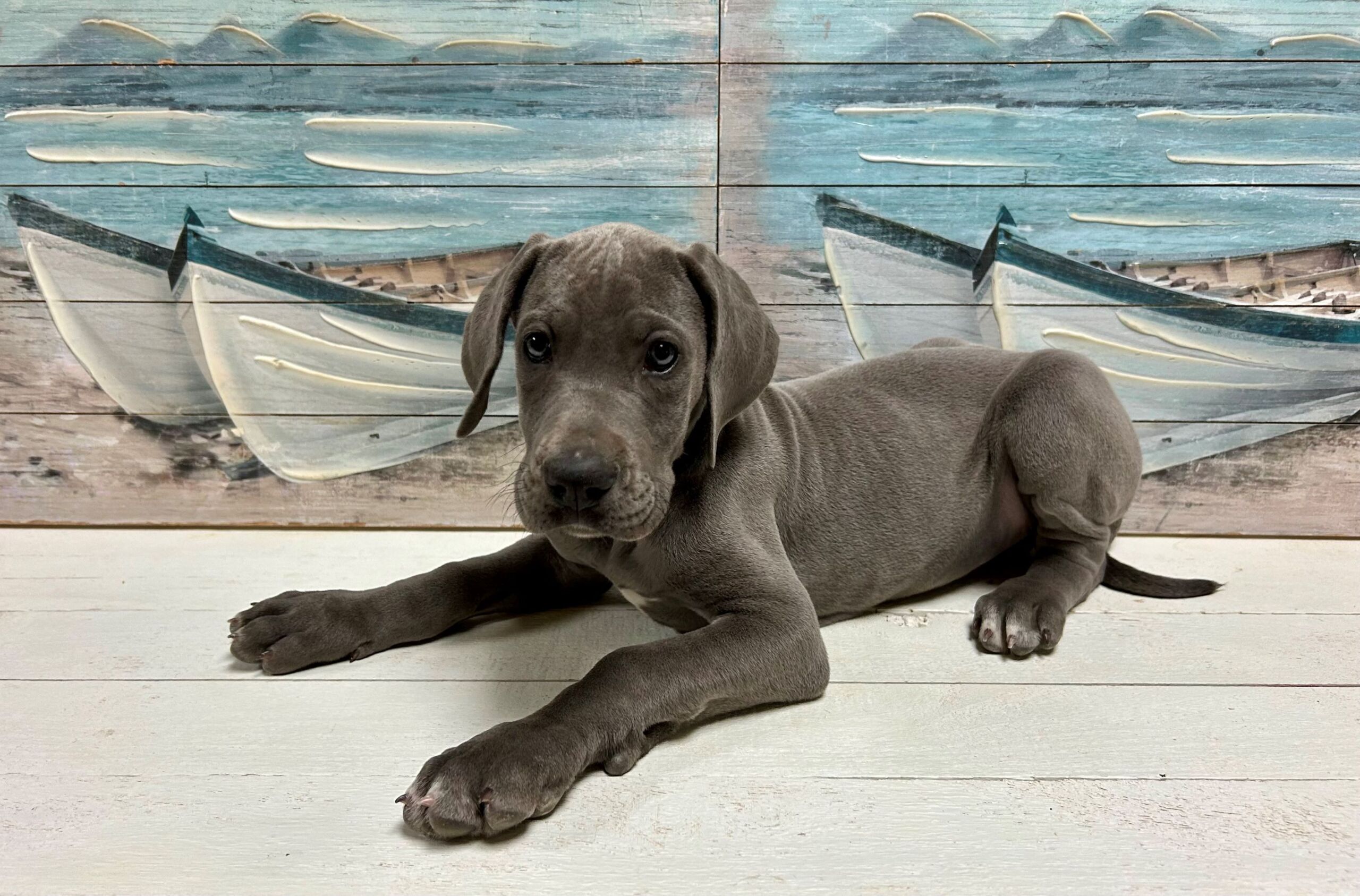 A big breed with an even bigger heart, the Great Dane is a large and lovable dog that brings happiness and unconditional love to its human friends. These gentle giants have a calm and sweet temperament, and get along well with other dogs, pets, and humans. They are eager to please, and love to be loved! In adulthood the Dane can range from 150 to 180 pounds and is seen in the beautiful coat colors of harlequin, mantle, blue merle, and fawn. Great Danes do require quite a bit of space, so homes with a yard may be best for your new friend.