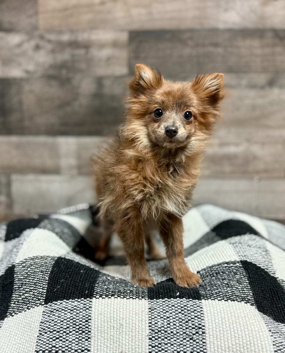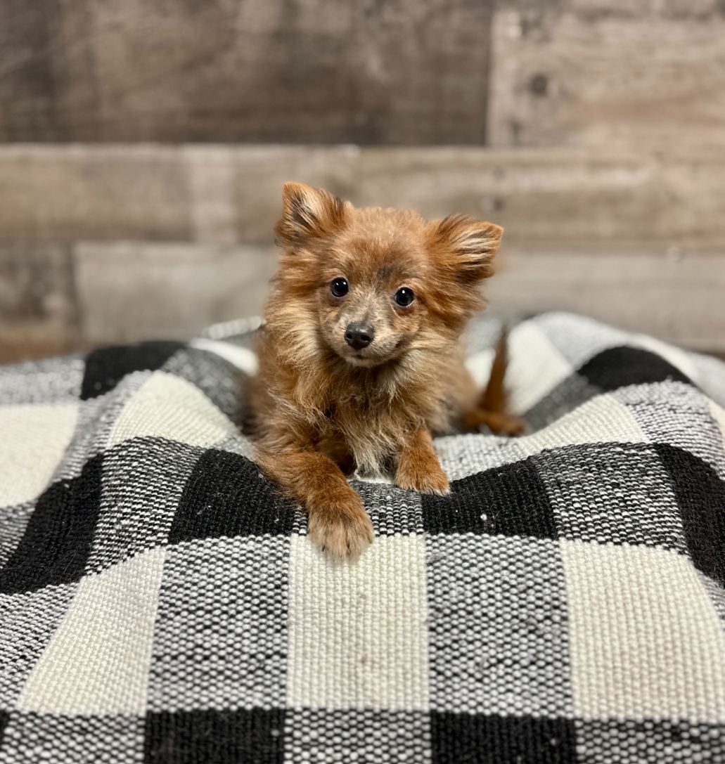 The Pomeranian is a tiny, compact, and lively toy breed (3–7 lbs) known for its thick double coat, fox-like face, and plumed tail that lies flat on its back. They are intelligent, confident, and alert companions with a bold, big-dog attitude, often acting as excellent watchdogs. Poms are playful, highly trainable, and require regular grooming to maintain their fluffy, plush appearance.