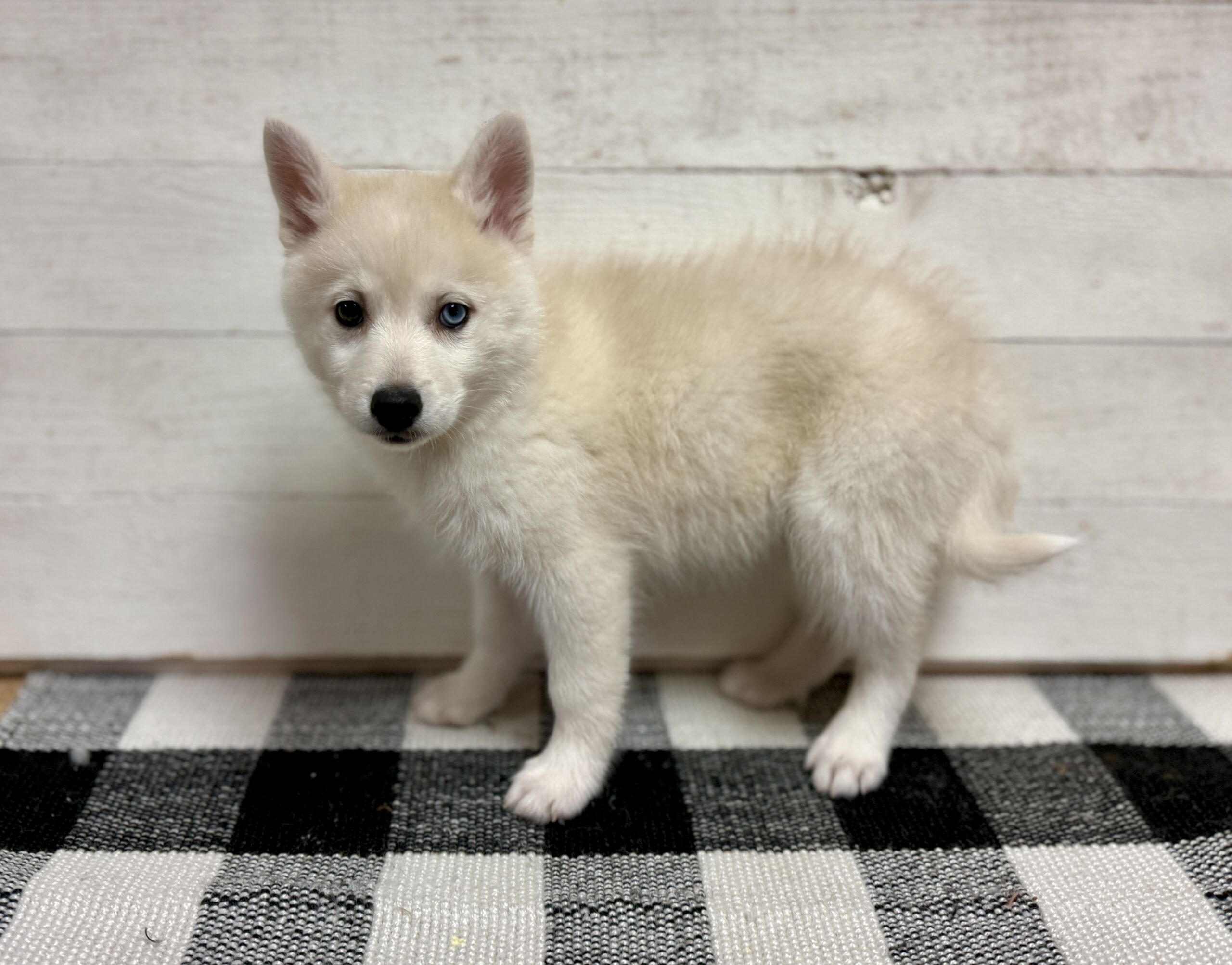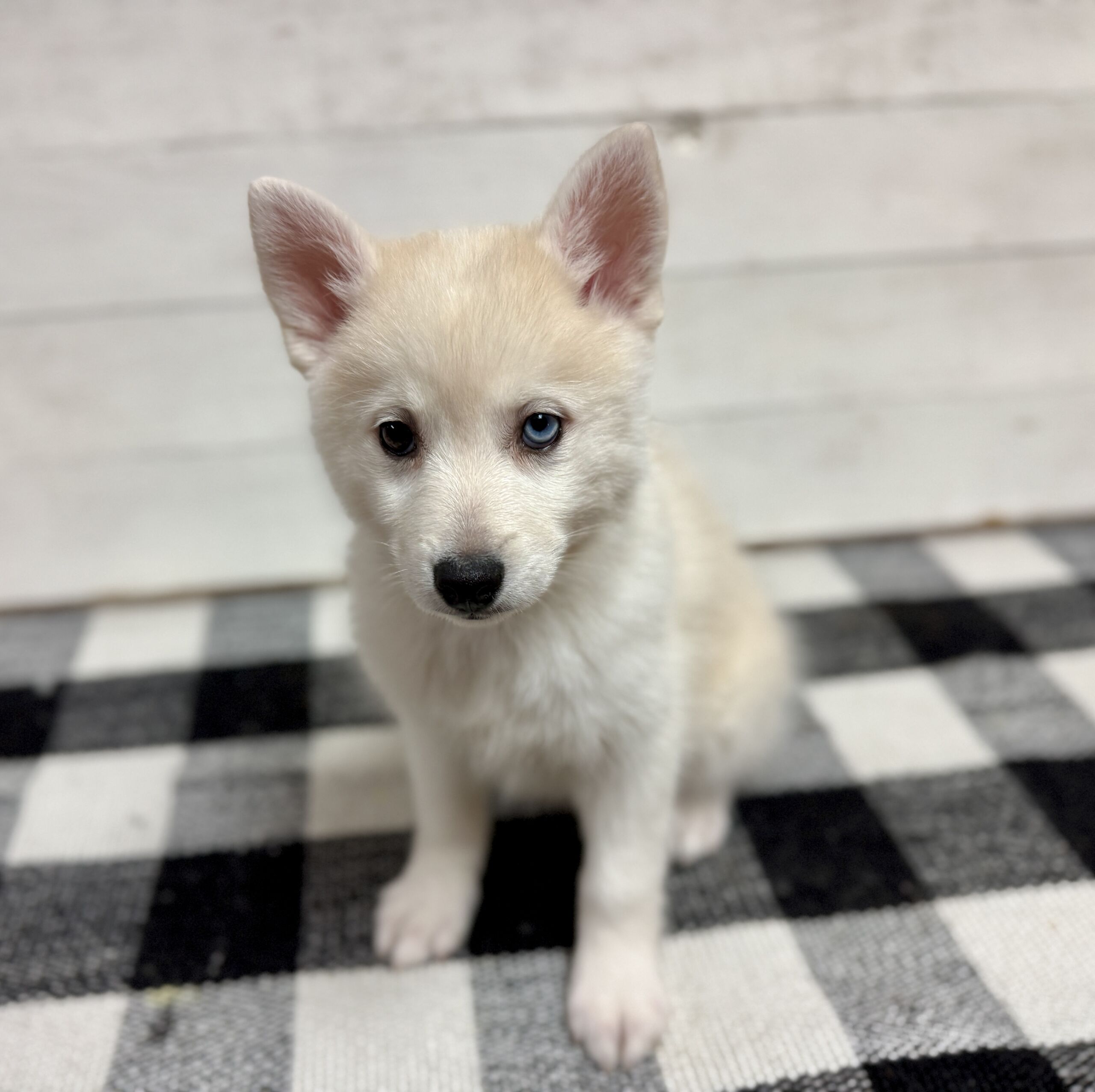 A Pomsky is a popular designer crossbreed, resulting from mixing a Pomeranian and a Siberian Husky, known for its striking looks (often like a miniature wolf), fluffy coat, and energetic, intelligent personality, though traits vary greatly, making them spirited but potentially stubborn dogs requiring significant exercise and grooming.
