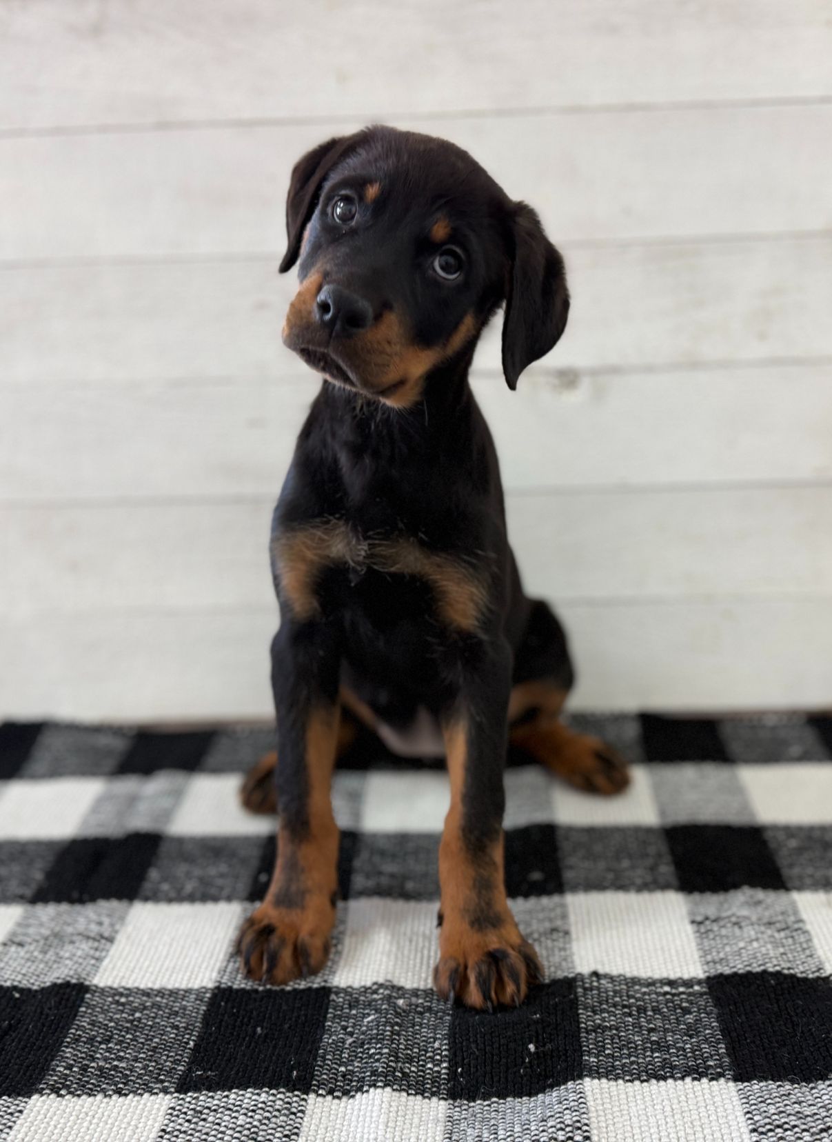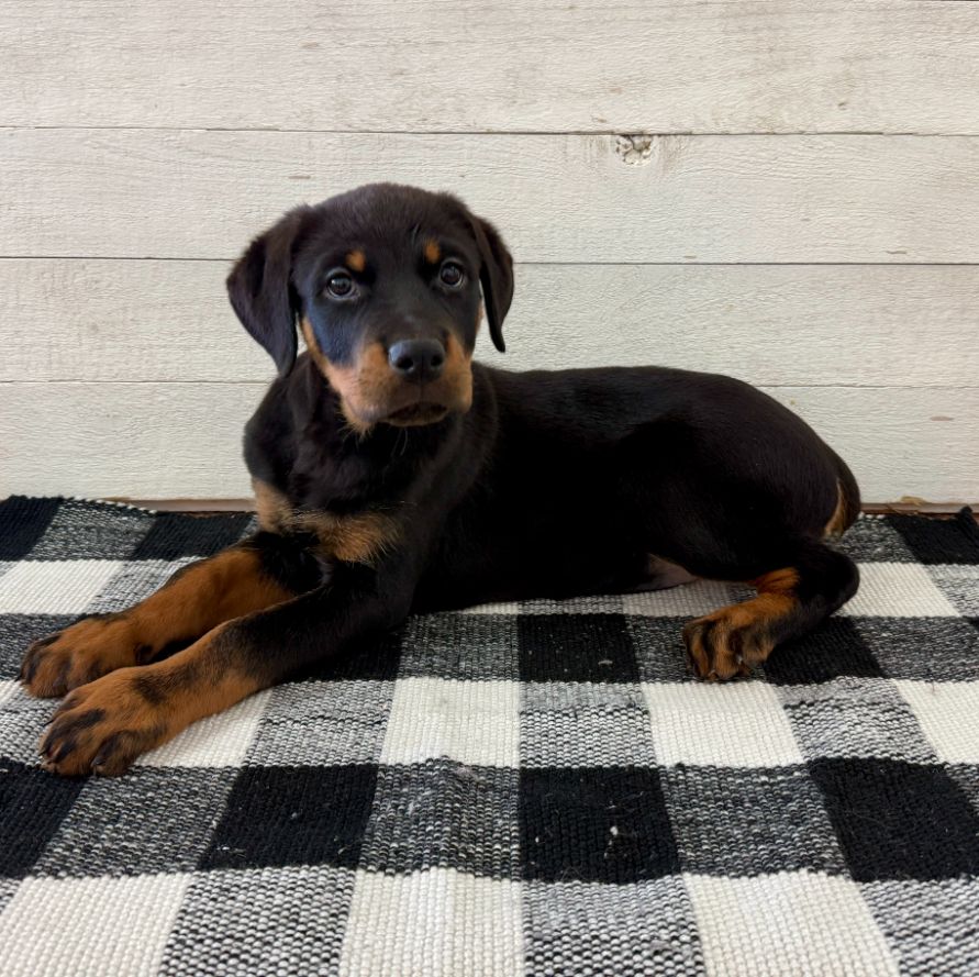 The Rottweiler is a large, powerful, and muscular working dog breed, typically weighing 80–135 lbs and standing 22–27 inches tall, with a distinct black and tan/mahogany coat. Known for being loyal, fearless, and confident, they are intelligent guardians requiring firm training and early socialization.